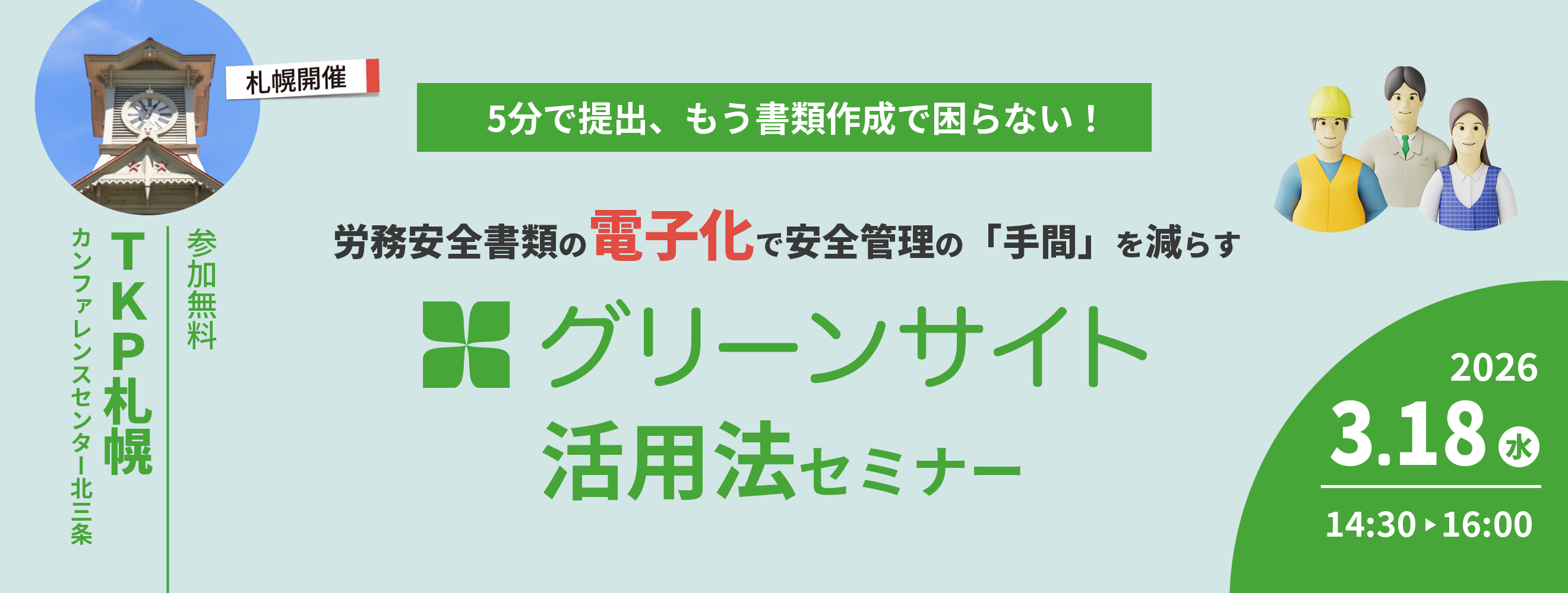 (札幌開催)5分で提出、もう書類作成で困らない! 労務安全書類の電子化で安全管理の「手間」を減らす、グリーンサイトの活用法